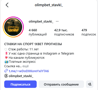 Также у Ивана есть аккаунт в Инстаграм, где он публикует скриншоты истории ставок. Там у него 42 000 подписчика. На постах однако часто по 1 лайку, а комментариев нет вообще. Постов при это уже почти 4 660. Другая ситуация во Вконтакте. Там у Ивана 23 000 подписчиков. Правда просмотры редко доходят и до 30.