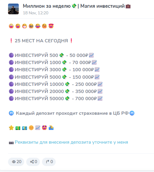 Канал “Миллион за неделю Магия инвестиций” СКАМ?