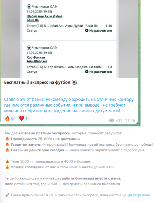 Обзор ставок “Олег ставит” отзывы о @OlegAdmin