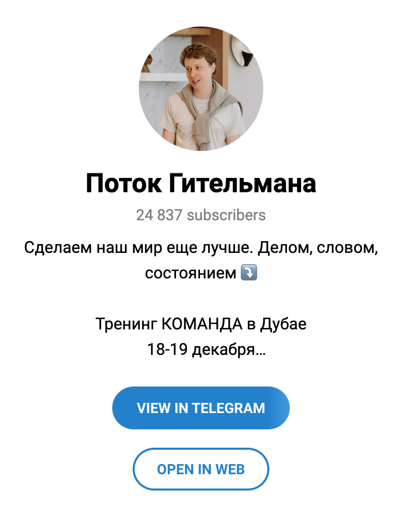 Павел Гительман ведет свой телеграм канал, где он обучает своих подписчиков. На канале почти 25 тысяч человек, однако мы сразу видим очень низкую активность. Обычно это означает что аудитория накручена, или приведена различными розыгрышами. В любом случае это негативный сигнал, так как мы в первую очередь оцениваем заинтересованность подписчиков. Также можно обратить внимание на единичные комментарии – это совсем не похоже на активность канала с 25 тысячами подписчиков. Кроме этого мы обратили внимание, что негативные реакции у постов отключены. Видимо Павел избегает показывать что какие-то ученики могут негативно относится к полученным материалам.