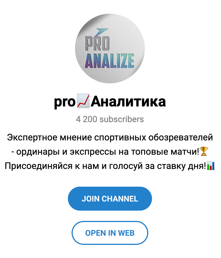 Наша команда экспертов проверила канал “Pro Аналитика”. По результатам проверки оказалось, что данный проект очень подозрительный. Автор проекта очень легко зарабатывает на доверчивых пользователях, а не на ставках.