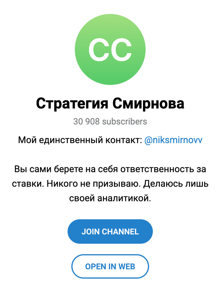 Обзор группы “Стратегия Смирнова”, отзывы о каппере @niksmirnovv